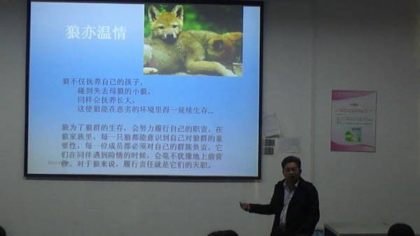 在讲座中鲁教授深入浅出,举一反三,对狼的生存方式进行了全面的描述,并结合当前形势,对职业规划、职场竞争、团队协作进行了全新的解读,使同学们认识到要如何调整心态,适应社会,快乐生存的重要性。同学们在聆听讲座中表示出了极大的兴趣。