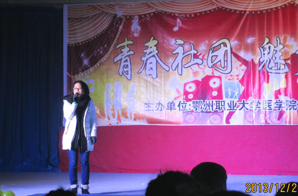 为活跃校园文化,充分展示医学院社团活动成果。医学院社团联合会于2012年12月26日下午2点,在校大学生活动中心艺术礼堂二楼举办首届医学院社团联合会组织文艺汇报演出活动。我院党支部书记汪艳霞、党总支副书记徐宏伟、团总支书记盛冠麟、全体辅导员老师及医学院社团成员1000余人参与本次活动。