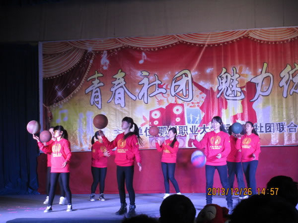 活动伊始院党总支汪艳霞书记发表热情洋溢的讲话,她对我院社联工作进行了充分的肯定并对社联今后的工作发展提出了建议。同时出席活动的领导为本年度优秀社团干事、优秀社团成员颁发荣誉证书。在气氛热烈、青春活泼的健美操中本次汇报演出拉开帷幕,我院篮协的女子花式篮球表演让他们目眩神迷;葫芦丝情乐坊带来的器乐展示,清幽静美、拨人心弦;我院瑜伽协会的瑜伽表演更是让全场观众叹为观止,文工团同学们优美的舞蹈展示让同学们大饱眼福,让活动现场高潮迭起,掌声雷动。