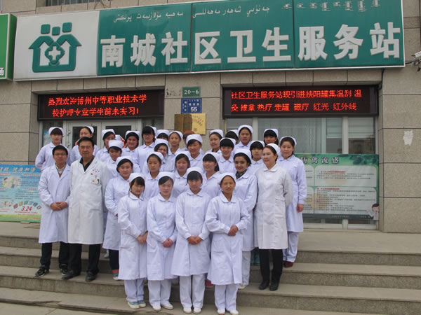 为促进湖北援疆结对帮扶,2014年4月27日,我院援疆教师盛冠麟积极参与博州中等职业技术学校对口支援当地社区服务活动,随同博州中等职业技术学校师生一行十余人深入博乐市南城卫生服务中心参与社区实践活动。为当地社区居民提供免费健康咨询,指导社区开展义务健康体检,组织社区居民参与疾病防控讲座。我院援博教师和对口支援学校师生耐心细致的服务赢得社区群众的广泛好评。 我院将不断努力深入帮扶博州中等职业技术学校做好对口支援服务工作,充分发挥我院护理专业优势,协助受援学校提升社会服务能力和人才培养水平,促进两校合作共建发展。
