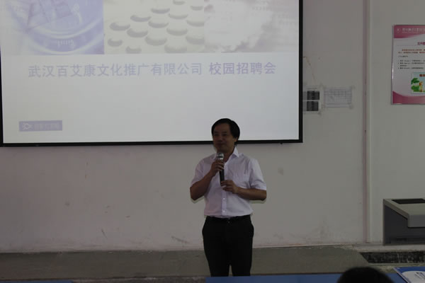 2014年5月5日下午,武汉百艾康文化推广有限公司在我院弘德楼阶梯二教室举行了专场校园招聘会,此次招聘会主要面向药学、医药营销和康复治疗专业学,15名同学生被公司录取。