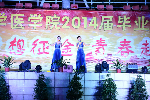 本次欢送会活动节目由医学院在校大学生们精心安排,为表达他们对即将毕业的师兄师姐的祝福之情,他们精心策划组织,内容丰富,气氛热烈。《时间都去哪里了》、《共圆中国梦》和班训班歌《向前冲》、《大话逗捧》等节目传达了对即将踏上新的征程的毕业生们的美好祝福。
