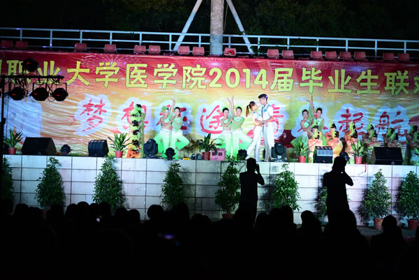 2014年5月26日晚7点,医学院主办的“梦想征途,青春起航”2014届毕业生联欢会在晚会在鄂州职业大学本部运动场举行,鄂州职业大学校长孔国庆、副校长周岫、科技学院院长杜小青、科技学院党总支书记朱兵、团委副书记艾涛及兄弟院系领导与我院近3000余名师生一同观看了晚会。