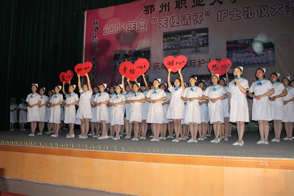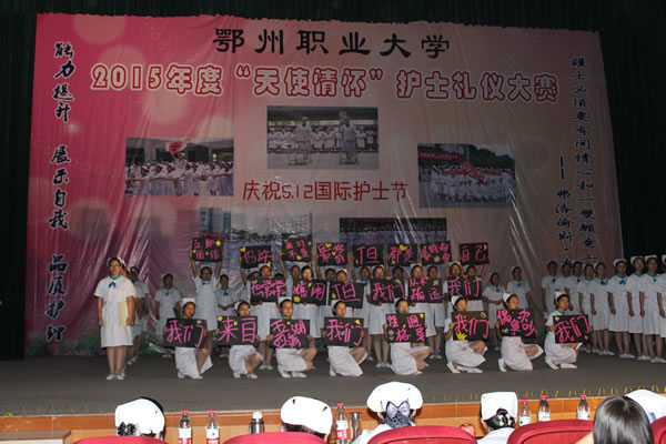 为了弘扬南丁格尔精神,彰显鄂州职业大学医学院天使礼仪风采,塑造护理、助产及涉外专业学生健康、文明、积极向上的当代护士形象,促进校园文明创建和专业文化建设,并隆重庆祝“5.12国际护士节”,医学院于5月10日下午在学校大学生活动中心举行了2015年度“天使情怀”护士礼仪技能大赛。