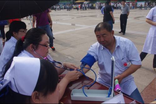 早上八点党员师生们在凤凰台下就做好了准备工作,络绎不绝的市民前来问诊、量血压,推拿按摩、内科、外科、妇科、儿科咨询,用药咨询等。 该活动项目中量血压、推拿按摩深受市民的欢迎。推拿按摩后市民脸上露出了笑容,舒心不舍的离去,还期待下次的按摩活动。