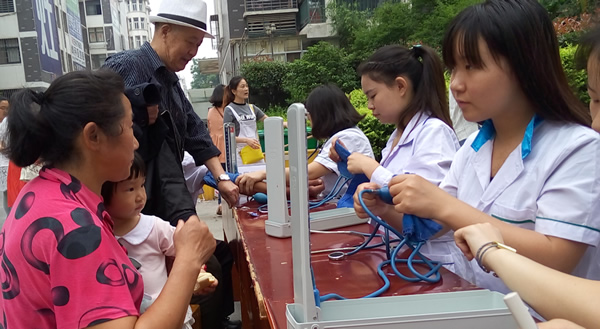 为深入推进创建“服务型”党支部,2015年5月23日星期六上午8点半,由鄂州职业大学医学院党总支药学教工支部和凤凰街道办事处文汇社区联合举办的“党员干部送爱心,服务社区居民” 健康卫生咨询活动在金凤凰小区举行。