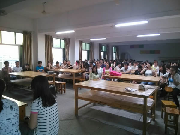 交流会伊始,康复治疗技术教研室主任黄先平代表教研室全体老师欢迎毕业生回家,并向与会的全体成员讲明此次会议的目的和意义,希望毕业生毫无保留的向学弟学妹传授他们的经验,为康复治疗技术专业建设添砖加瓦。随后毕业生代表逐一耐心、细致的说出了自己的体会。随后是互动环节,在校生代表提问,由毕业生代表解答。最后分实习小组讨论,2012级和2013级同一实习单位的学生坐在一起进行交流。