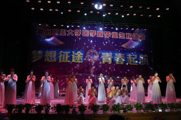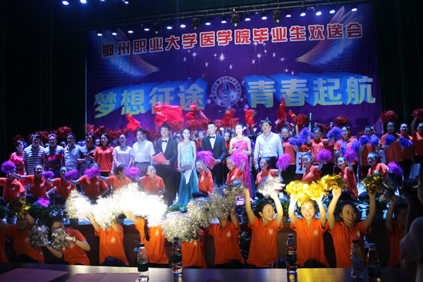 6月14晚,医学院在大学生活动中心二楼礼堂举办了2015届“梦想征途 青春起航”毕业生欢送会。鄂州职业大学党委副书记、副校长周岫亲临晚会现场,并作了热情洋溢的讲话,她告诉同学们,明天你们将毕业了,将走向社会,走向工作岗位,你们将是鄂州职业大学最年轻的校友,也将是社会最年轻的学生。大学毕业既是一个终点,又是一个起点,大学毕业只是大家人生中走完的第一步,希望所有的同学在漫长的人生中,学会迎接丰富多彩的人生。