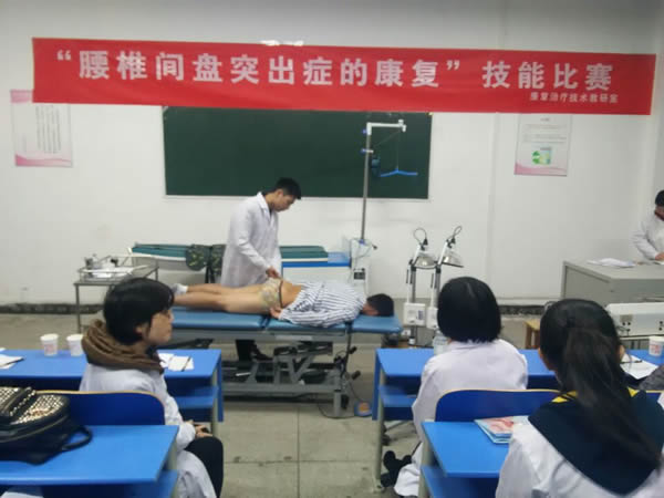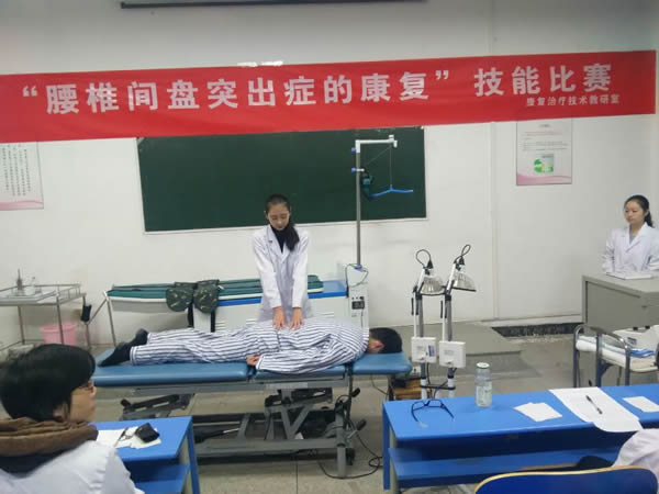 为了促进职业教育改革与创新、展示本专业人才培养特色、促进院校人才培养模式的变革、促进教育教学模式的创新、提升学生职业技能水平、促进本专业技能训练激励机制的形成,康复治疗技术教研室于2015年11月8日上午8:00举办了“腰椎间盘突出症的康复”技能比赛。本次比赛以腰椎间盘突出症的康复工作任务为导向,按照康复治疗师岗位工作的要求,对腰椎间盘突出症患者实施康复工作。比赛设置病史采集,康复评定、康复方案研讨、康复治疗、健康教育五大模块。主要考核选手评判性思维能力,康复组织与管理能力、康复评定及治疗能力及人文职业素养。