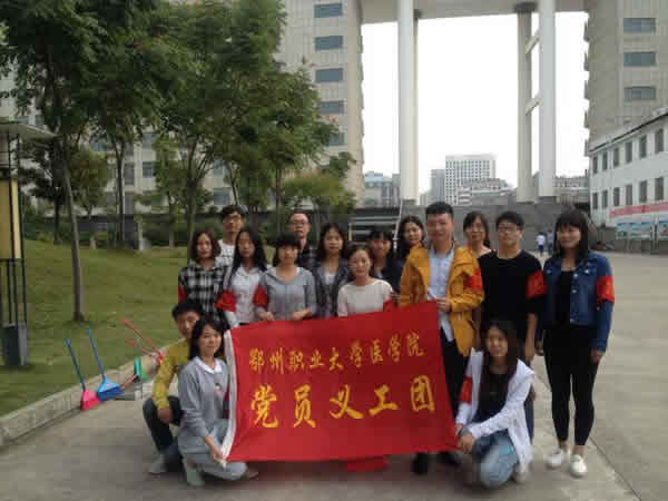 2015年9月25日中午“医学院党员义工团创干净和谐校园”活动在鄂州大学五号楼前进行,医学院党支部部分人员参与了这次活动。