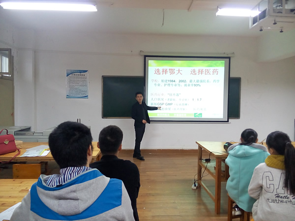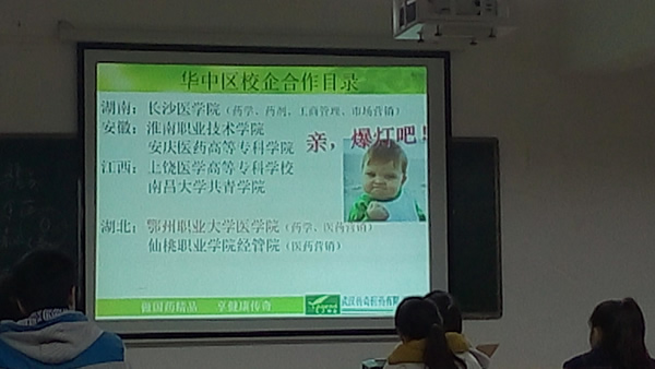 2015年11月14日下午14:15,我院2014级药学、药品营销专业“传奇”订单班第一课“选择鄂大 选择传奇”在医学院608教室正式开讲,课程由武汉传奇医药有限责任公司华中区人事总监邢庭毅主讲。