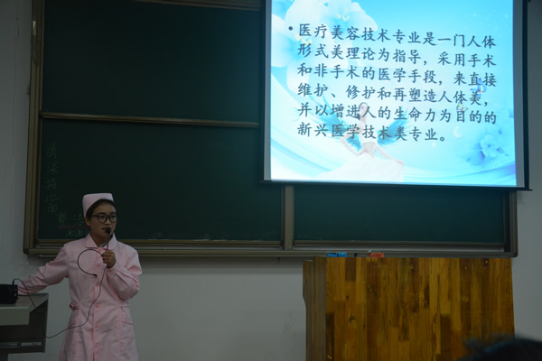 为促进学生职业认知,引导学生开展专业规划。医疗美容技术教研室于11月19日下午在五号楼E栋103教室开展“我的美丽人生,我做主”演讲比赛决赛。医学院杨家林院长出席活动并致辞,医疗美容教研室全体专职老师及各位辅导员担任比赛评委老师,2014级2015级医疗美容技术专业100余名学生参与本次活动。