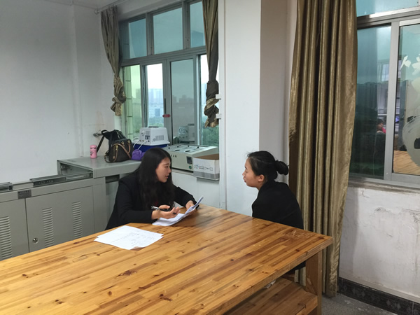 首先,刘婉经理为大家介绍了企业发展历程,从零到现在非凡的成就。通过介绍欣安的学习精神“专注、专业、专心”来告诫我们学生:学习没有尽头,只有不断学习,才能不被社会淘汰。接着,现场答疑。同学们现场询问各类问题,企业负责人与我院2013级实习生李忠欢为大家解答心中疑惑,并和大家分享自己的实习体会及在欣安成长的点点滴滴。这一举动让同学们放下心中的紧张包袱,更好的投入到公司的面试当中。最后,开始面试。