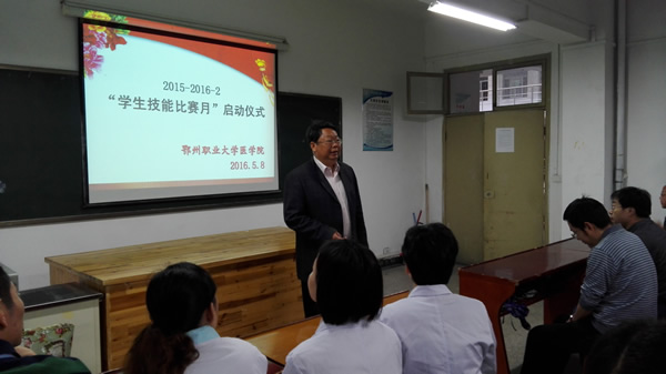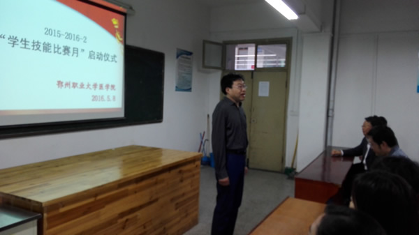 为了响应学校“进一步推进实践教学改革与创新,提高学生技能水平和综合素质”的号召,医学院于58日上午8:30在我校弘德楼301一体化教室举行2016年学生技能大赛启动仪式,本次启动仪式由医学院杨家林院长主持,学校副校长杨殿生,教务处副校长黄世宽参加启动仪式并讲话,医学院各专业教研室主任、技能比赛评委、参赛学生参加了本次活动。