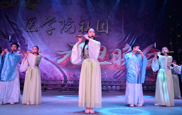 晚会由一段激情四射的斗牛舞而拉开了帷幕。灯光与人影交相辉映,现场气氛十分热烈。晚会过程中,社团成员纷纷献艺,用歌声与舞蹈带来了最精彩的表演。15个节目涵着歌曲,舞蹈,小品,器乐演奏等多种表演形式。动感的舞曲让人热血沸腾,而葫芦情乐坊的合奏《荷塘月色》以及主持朗诵《雨巷》又让人十分舒适,仿佛身临其境。