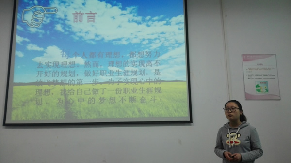 主持人宣读完比赛流程及评分标准后,参赛选手依次上台进行演讲。他们根据个人职业规划测评系统的测评结果,结合自身实际情况、个人兴趣爱好、能力特点、时代特点及职业倾向等多方面进行分析,最终确定最佳的职业奋斗目标,同时也为实现这一目标制定了行之有效的规划。