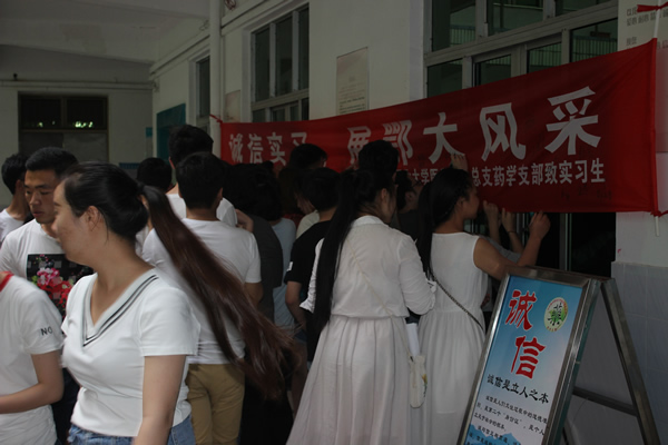 药学教工支部开展本次活动,希望2015级药学、药品经营与管理专业的实习生在实习期间以及以后的工作中用“诚信实习,展鄂大风采”来规范自己的言行,做个高素质的大学生,早日实现自己的中国梦。