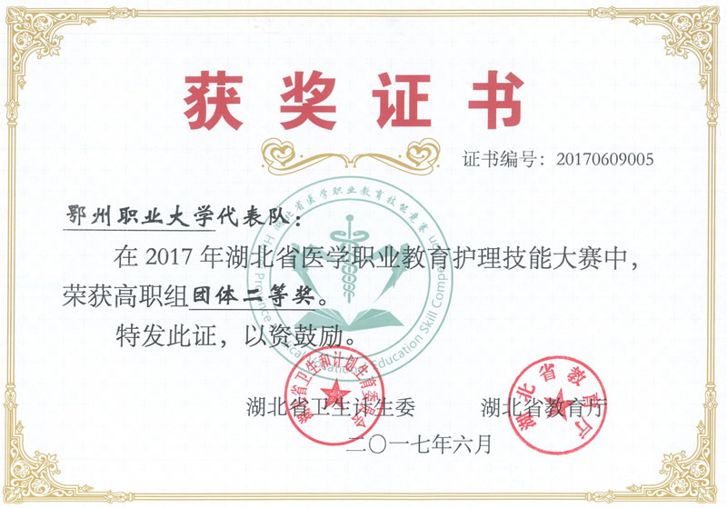 2017年湖北省医学职业教育护理技能大赛高职组团体二等奖