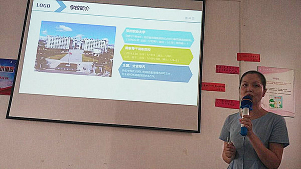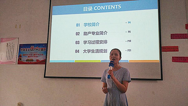 接下来,曾老师从学校简介、助产专业简介、学习过程安排、大学生活规划四个方面给新生进行专业教育。重点介绍的内容包括:什么是助产、什么是助产士、专业人才培养目标、职业岗位及主要工作、市场人才需求、专业办学条件、课程体系、专业学习安排、合理规划大学生活等。