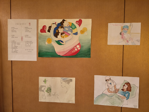 在14日晚场外活动的“未来助产画展”环节中,我院助产专业学生创作的3幅助产题材绘画作品被选中参与了画展,获得了观摩者的一致好评。