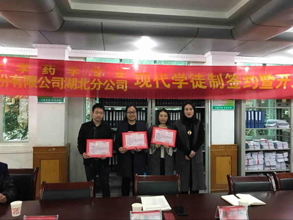 2017年11月16日下午2点半,我院药学专业与湖北益丰大药房连锁有限公司现代学徒制校企合作签约暨开班仪式在学校4号楼三楼会议室隆重举行。