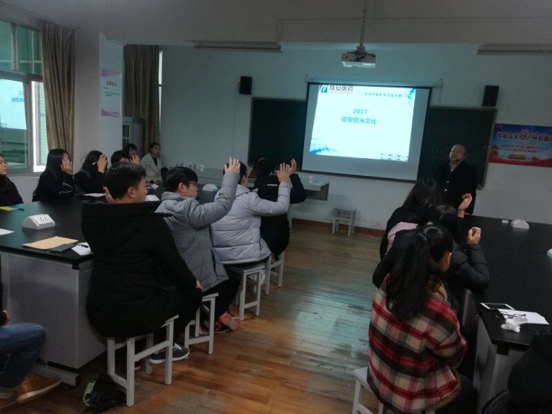 课堂上欣安班的同学都表现出非常积极的一面,大家不停地询问学姐们实习选择的平台及后来成长过程中遇到的困难,自己应该如何面对和解决这些困难等等。公司也拿出6本成功日志奖励给表现活跃积极的同学,鼓励他们在接下来实习的日子里,以欣安的精神要求勉励自己!通过与企业老总和实习中的学姐们面对面的交流,大家对公司有了更深入的了解,对今后的实习和就业岗位也有了更深刻的认识。