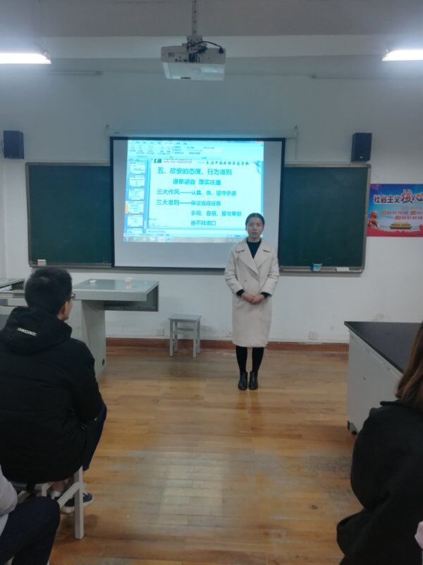 本次授课主要分两个环节进行。环节一董总跟同学们分享成功的三要素:行动力、担当力和决策力。同时将欣安的职场文化传递给同学们,并分享了欣安公司的态度行为准则——“谦卑涵容,厚实庄重” 。董总耐心地跟大家分析了每个字面背后的含义,还举例自己过去的事迹强调出社会以后,要先做人,后做事,并结合自己在工作的实例毫无保留地传授同学们处理危机事件的方法。