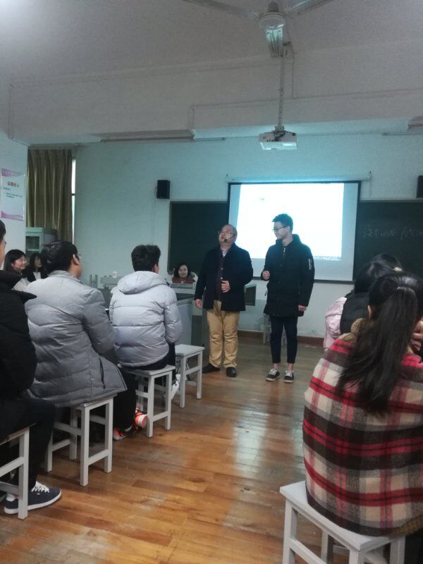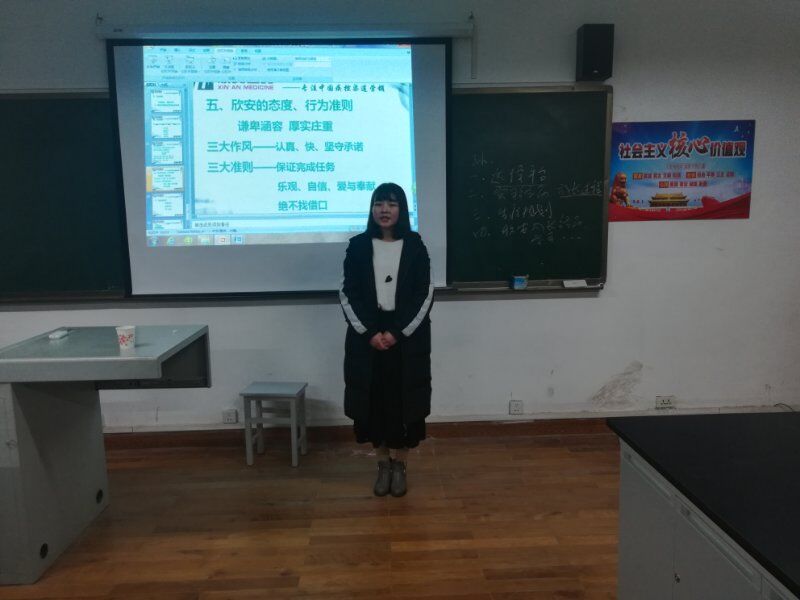 董总授课完后,来自欣安公司的2位优秀实习生,2015级药学专业的陈倩和孙碧红为欣安班的同学们分享了自己在湖北欣安医药有限公司半年的实习生活中所取得的收获。她俩以自身的实习经历告诉欣安班的学弟学妹们不要迷茫,做好职业规划,要靠自己的努力活出精彩。