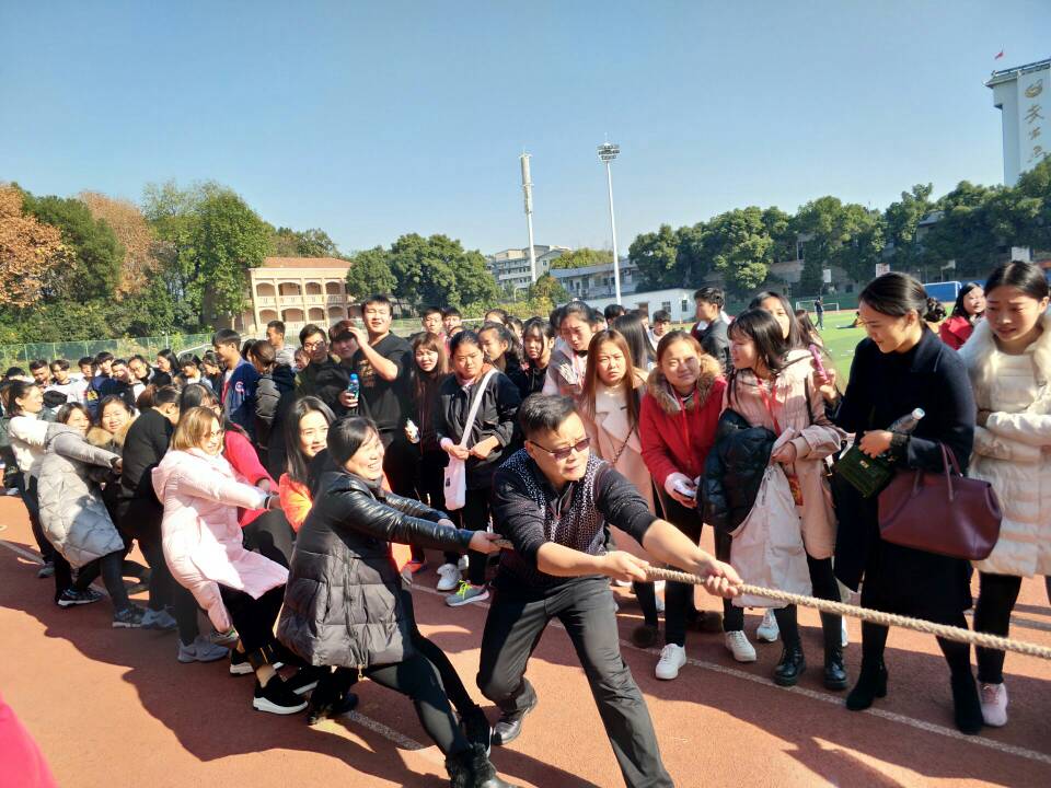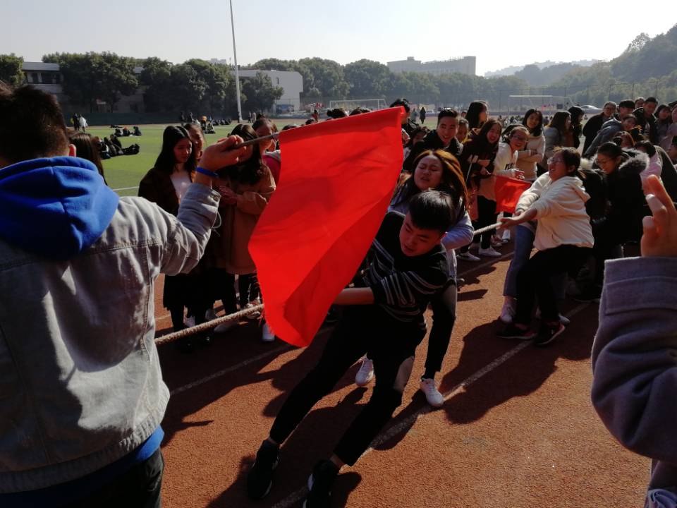 首先进行的是重磅追击项目——50米迎面接力,同学们积极的做着热身运动,摩拳擦掌、蓄势待发,随着一声哨响,就如离弦的箭,一触即发,他们奋力奔跑,配合默契。旁边掌声、笑声、加油声,此起彼伏,场上场下互动交流频繁,彼此相互调侃,整个比赛过程充满了愉悦的气氛。接下来进行的是势均力敌项目,只见同学们双腿弓步,双手紧握绳子,铆足了劲,喊着”1212”的节奏卖力往后拉,很多同学拉的脸颊通红也丝毫不放手,更是让人不得不佩服我院学子不抛弃不放弃的精神。整个赛场热火朝天,旁边加油的同学看的热血沸腾,恨不得冲上去拉两把。