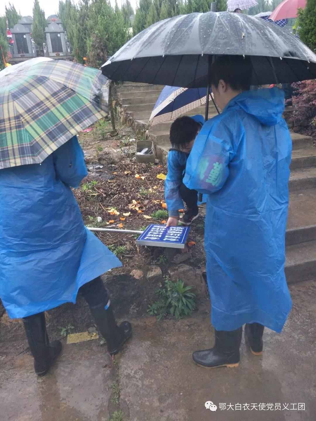 不得不说预备党员们都很积极努力,在今天这种恶劣的天气下依然坚守岗位,穿梭在陵园间为前来的人指路、提供帮助,哪怕寒风刺骨,雨水浸湿了鞋袜,仍然在雨中奔走,让我感受到大家真的十分优秀有爱,为今日的学姐学长和小伙伴们点赞。