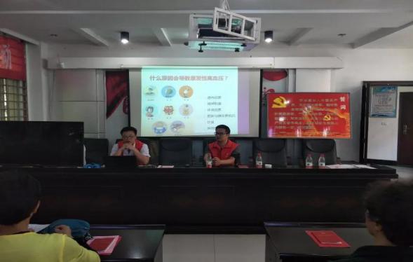 2018512日,医学院护理协会委员会为响应“关爱生命 健康护航”的主题,鄂州职业大学医学院党员老师们,来到了江城社区,开展志愿服务活动,和年轻的老党员同志们一起分享健康教育知识。