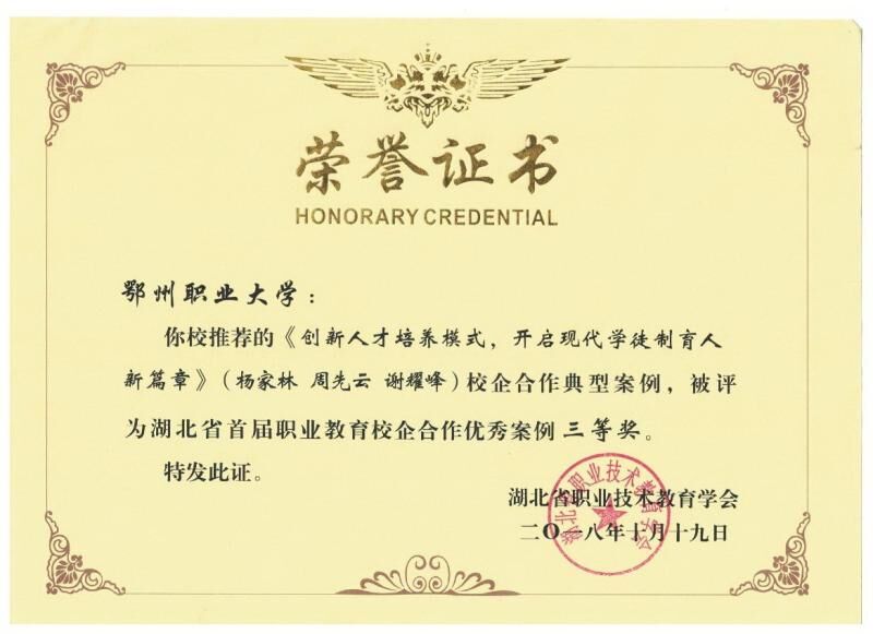 2018年10月20日,我院药学专业推送的《创新人才培养模式,开启现代学徒制育人新篇章》校企合作典型案例,在湖北省首届职业教育校企合作优秀案例评选中荣获三等奖。该案例以现代学徒制药学专业建设为载体,展示了药学专业如何将知识学习、技能训练与学生(徒)培养有机结合,校企共同培养高素质技术技能人才,具有一定的典型性、示范性和推广性。