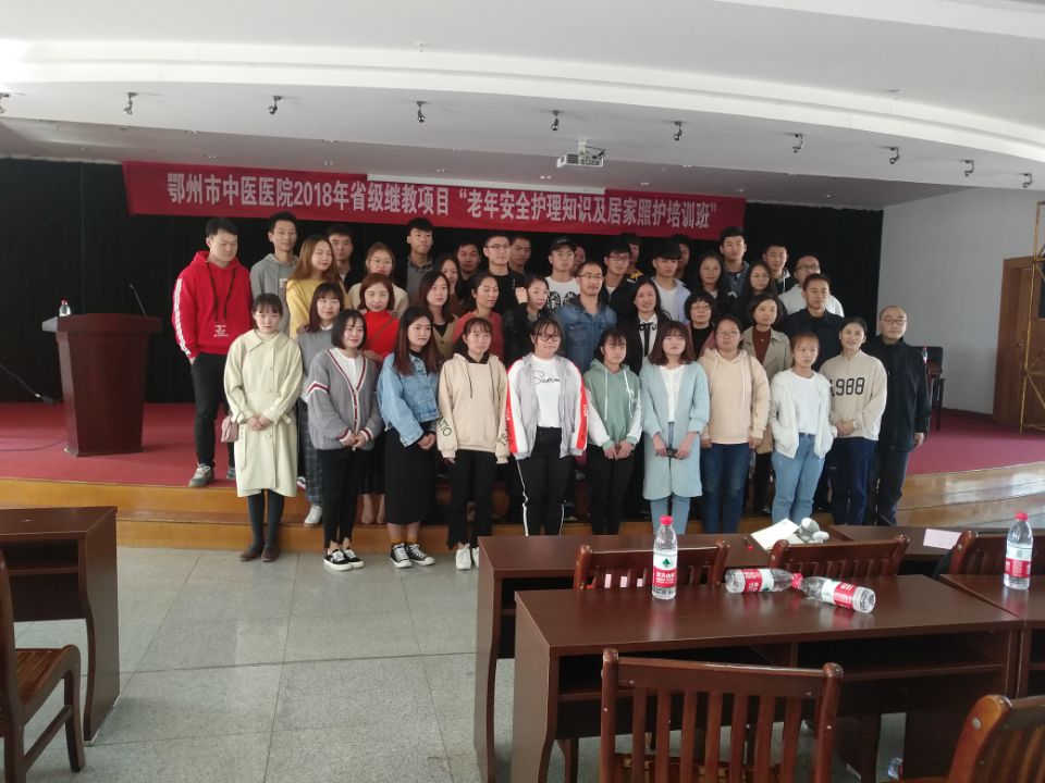 2018年10月27日,医学院2017级康复治疗专业学生参加了在鄂州市中医院举办的中医医院老年安全护理知识及居家照护培训学习。