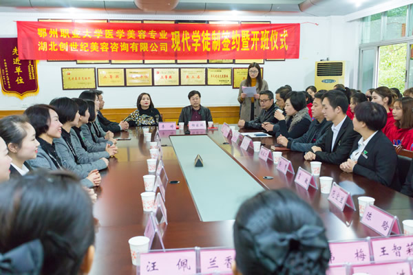 医学美容专业与湖北创世纪美容咨询公司举行现代学徒制班签约暨开班仪式