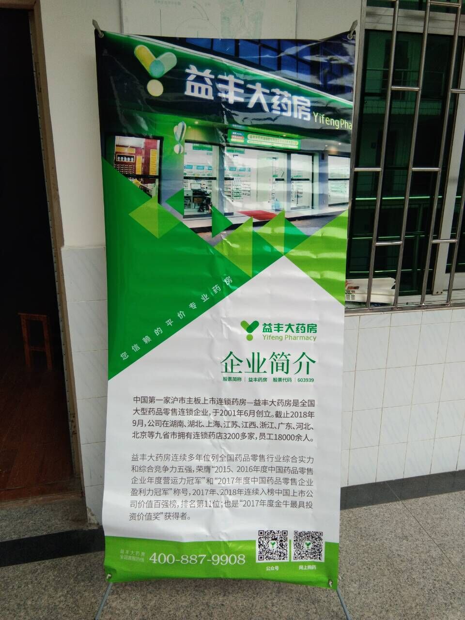 中国第一家泸市主板上市连锁药房――益丰大药房是全国大型药品零售企业,于2001年6月创立。截止2018年9月,公司在湖南、湖北、上海、江苏、江西、浙江、广东、河北、北京等九省市拥有连锁药店3200多家,员工18000余人。