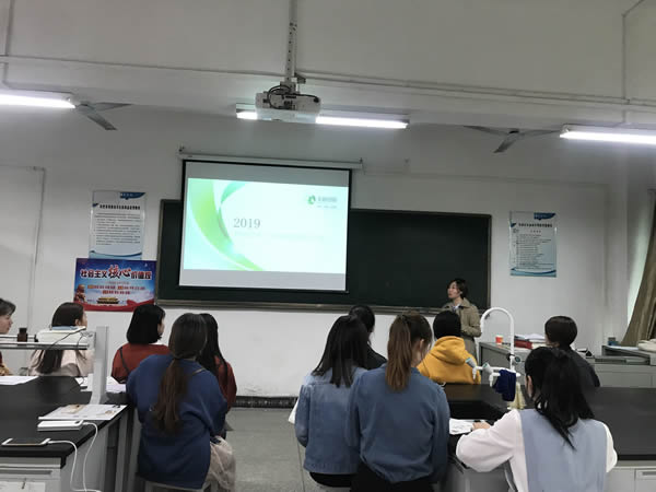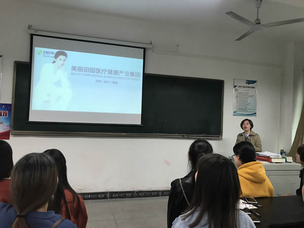 2019年4月4日,美丽田园公司在弘德楼602教室特举行实习招聘见面会,我院2017级医学美容专业学生参加了本次招聘会。美丽田园公司人事经理吴俊燕,培训老师唐桂芳莅临我院,吴经理主持了本次招聘见面会。