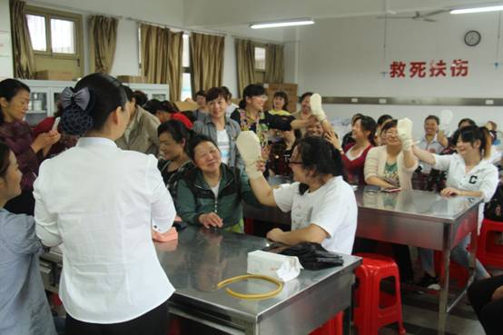 万晓燕教授首先通过多媒体讲解了救护知识和要点,然后观看操作小视频,最后示范和指导舍管员练习救护操作,舍管员同志们非常认真的练习,学习情绪高涨,效果很好。这次应急救护的培训在热烈的掌声中结束。后勤集团的领导肯定了此次活动的意义和成功,表示下次还要开展此类救护培训活动,如心肺复苏术培训。
