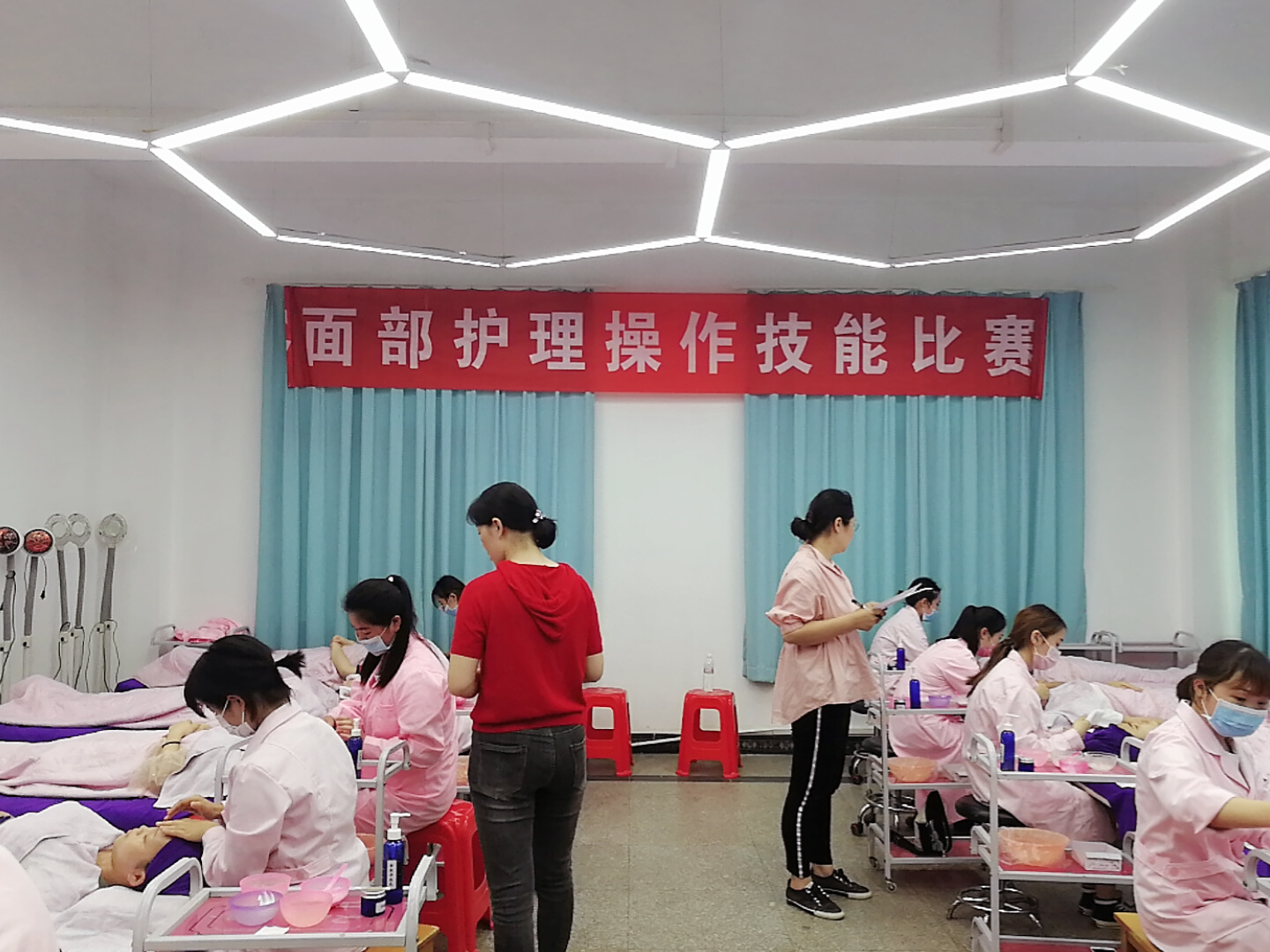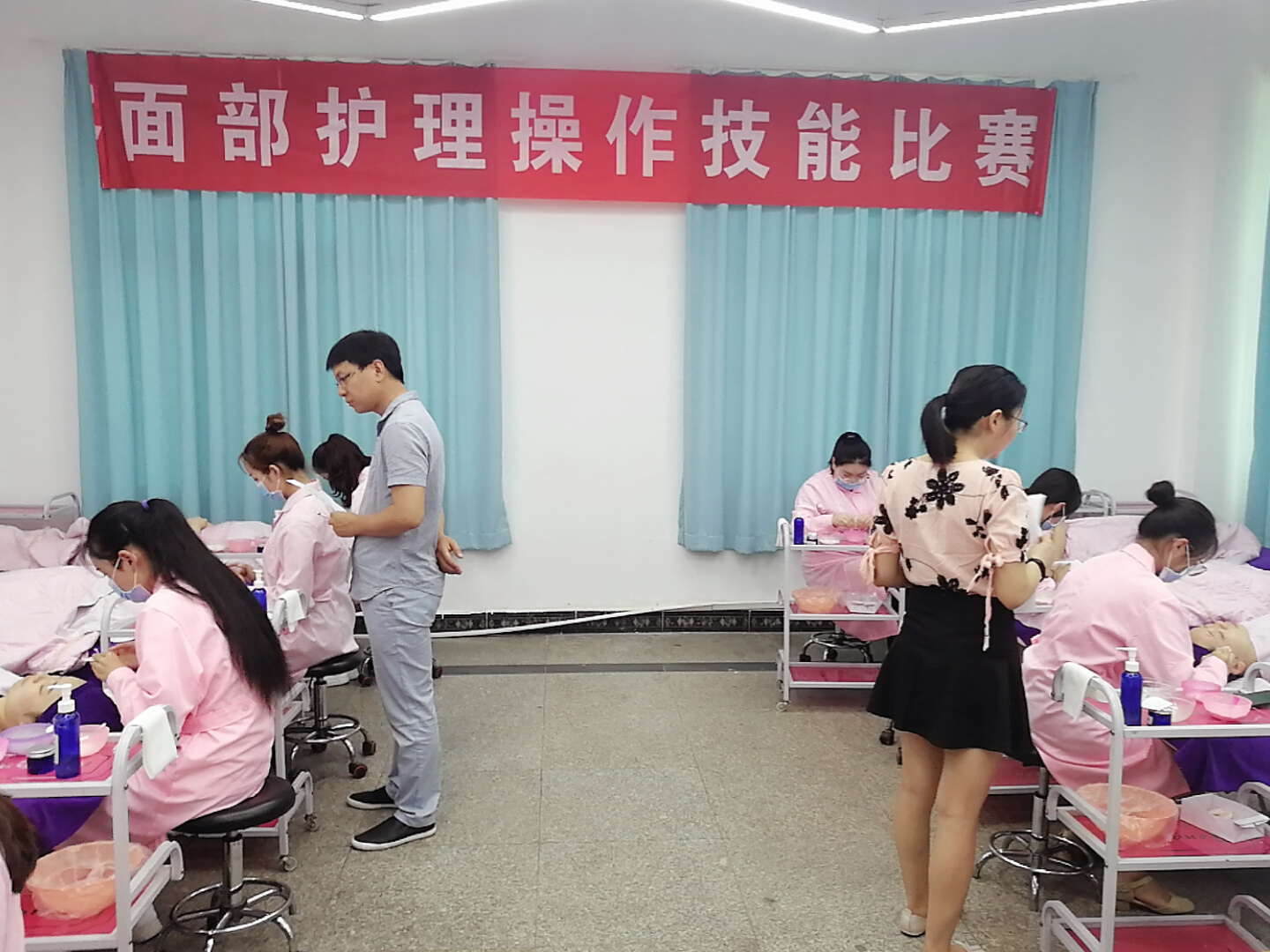 2019年6月11日14时在弘德楼101美容实训室,医学美容技术专业面向本专业2018级学生举办了面部护理技术操作技能大赛。比赛目的是为了进一步提高学生的职业素养、检验面部护理专业课的教学质量和学生掌握实际操作技能情况,且为学生提供一个展示个人技能和风采的平台。