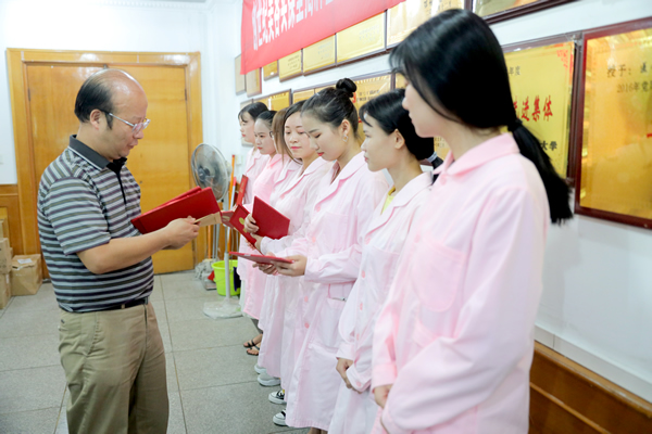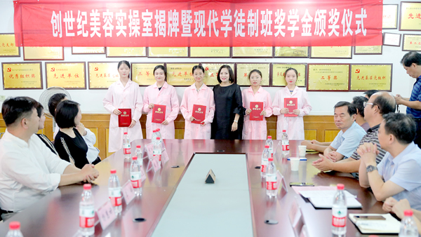2019年9月12日上午9:00,在弘德楼304会议室,湖北创世纪美容咨询有限公司与我院共同为2018级医学美容技术专业“创世纪现代学徒制”班举行优秀学员表彰活动。出席表彰活动的领导有:我校校长周峰、教务处处长陈适、校企合作处副处长张田单、医学院领导班子成员,湖北创世纪美容咨询有限公司董事长李婷、冯国强及公司高管出席了本次活动。