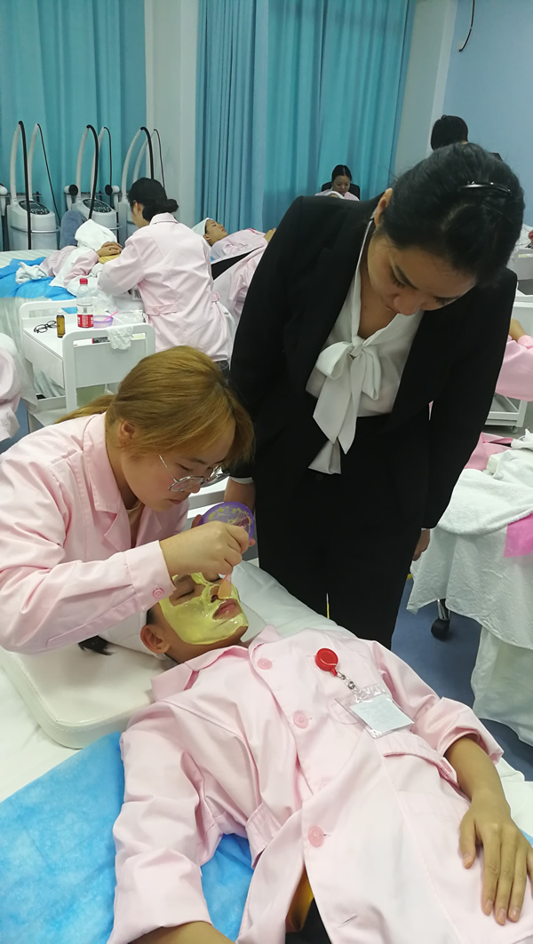 美容行业就是与美相伴,与美同行,美容师只有时刻保持良好的状态,才能更好的适应这个行业的发展。上课之前,学生常规进行手操训练和深蹲训练,目的是为了锻炼美容师手的柔韧度和灵活性,有意识的逐渐增强力量和持久度。