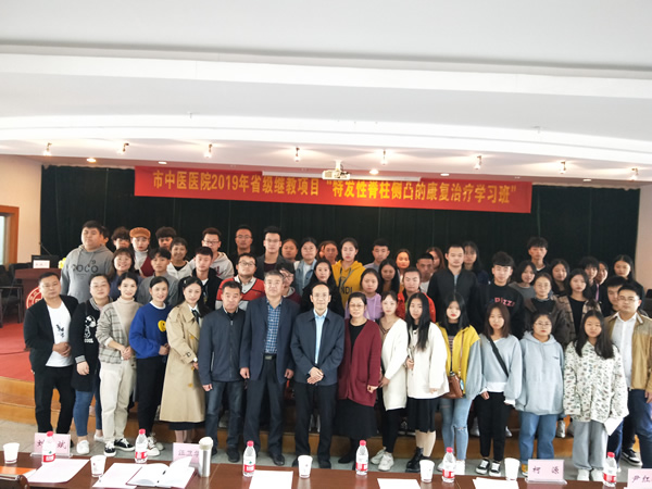 2019年10月26日,医学院康复治疗专业百余名学生在教研室黄先平老师及唐鼎丰老师的带领下参加了鄂州市中医医院2019年省级继教项目“特发性脊柱侧突的康复治疗学习班”。