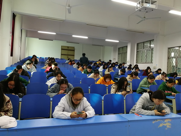 2019年11月22日中午12:00~12:30,我校医学院2018级护理助产专业68名学生在学校弘德楼阶梯二教室,参加由医院远程控制的“2020年武汉大学人民医院实习生招聘理论考试”。