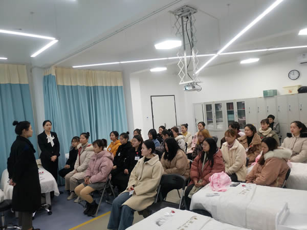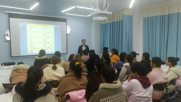 2019年12月23日上午9点,在医学院弘德楼103创世纪美容实训室,创世纪现代学徒制班进行本学期最后一次课程教学。课程内容主要是对本学期学习情况进行总结,和对即将到来的期末考试的心理辅导。