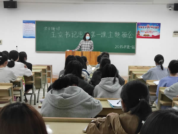 中共鄂州市委书记王立在11月4日上午以《弘扬伟大抗疫精神 绽放青春靓丽风采 做有理想有本领有担当的时代新人》为题,在我校大学生活动中心,给师生带来精彩的开学思政第一课。为学习王立书记11月4日思政第一课讲话精神,11月8日,我校全体师生开展学习、研讨王立书记第一课为主题的主题班会活动,迅速掀起学习高潮,以学习为契机“立学风 树新风”。