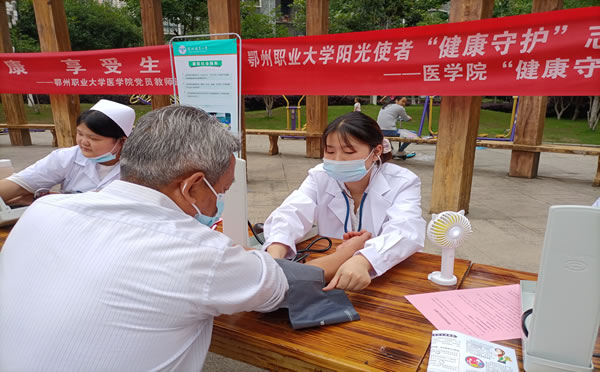 2021年5月28日星期五,鄂州职业大学医学院青年志愿者协会健康守护志愿服务队在西昌曦城开展了“学党史、强信念、跟党走”义诊进社区活动。