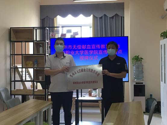 6月4日下午,鄂州市无偿献血宣传教育基地宣传教育点授牌仪式在鄂州职业大学医学院党员活动室召开,医学院成为鄂州市首个无偿献血宣传教育基地宣传教育点。