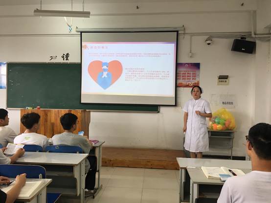 授牌仪式后,市中心血站宣教员聂红走进教室,为学生们进行无偿献血健康知识宣教。
