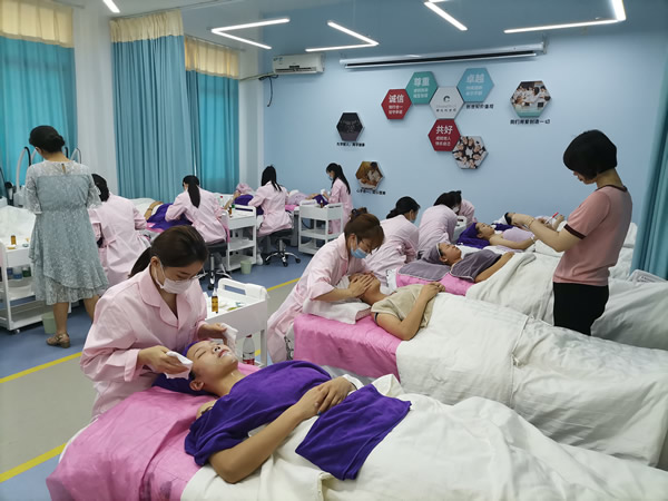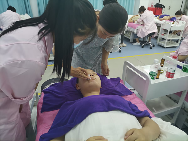 本次课安排结业考核,考核内容分为面部卸妆及护理、背部按摩两部分。考核期间,学员们认真专注、动作连贯、操作更有韵律感和节奏感。经过前期努力,学员对自己的考核成绩均满意。