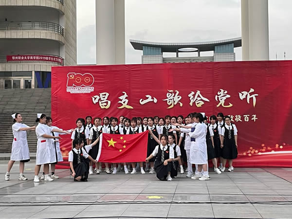 为响应党的号召,庆祝党的一百周年,百年征程新时代,把青春赞歌献给党。2021年6月25日,鄂州职业大学医学院2020级全体同学共28个班级,在鄂州职业大学五号教学楼开展以“传唱红色经典,锤炼理想信念”为主题的班歌班训比赛。莅临此次活动的领导有医学院党总支书记汪艳霞,副书记徐宏伟,团总支书记游潇,评委老师有教研室主任盛观林,专职辅导员熊辉,汪希,杨柳。2020级专职辅导员参与了这次活动。