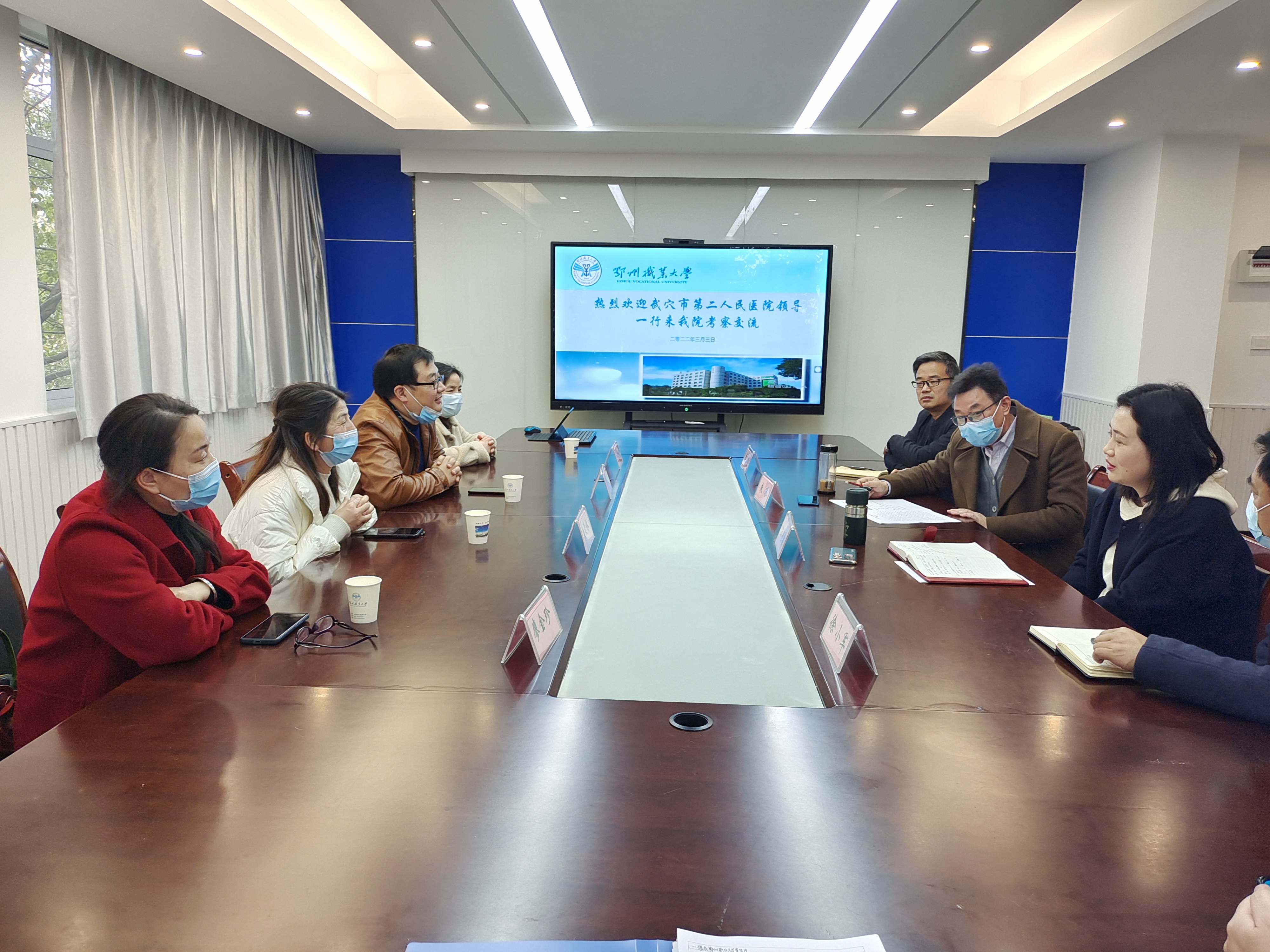 为促进共同发展、强化院校合作、探讨就业及实习点建设等相关事宜,33日下午武穴市第二人民医院工会主席陶刚、副院长夏爱妹一行,来我院进行考察交流并座谈。